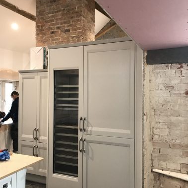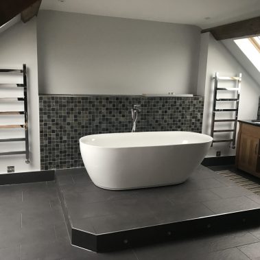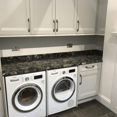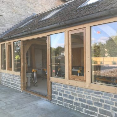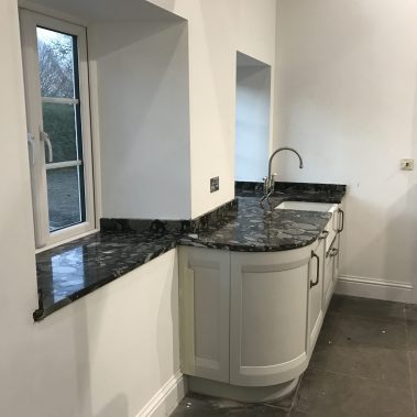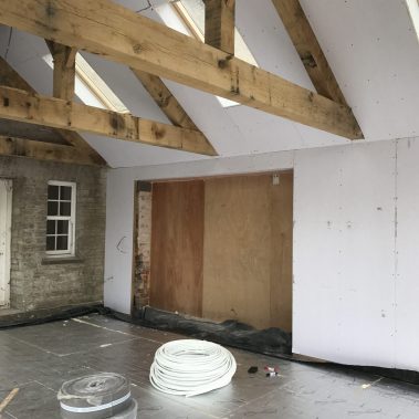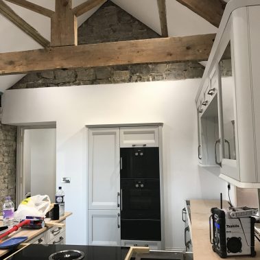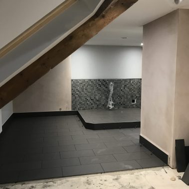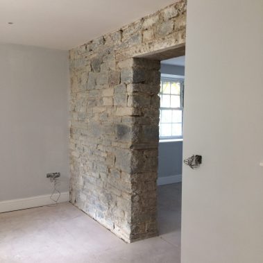 Complete renovation of a country house in Somerset. Pitcher Build renovated the existing property and constructed an oak beamed extension. Internal bespoke features were created using Blue Lias natural stone and charcoal tiled flooring. Extensive landscaping and driveway using granite sets and light grey Indian sandstone.